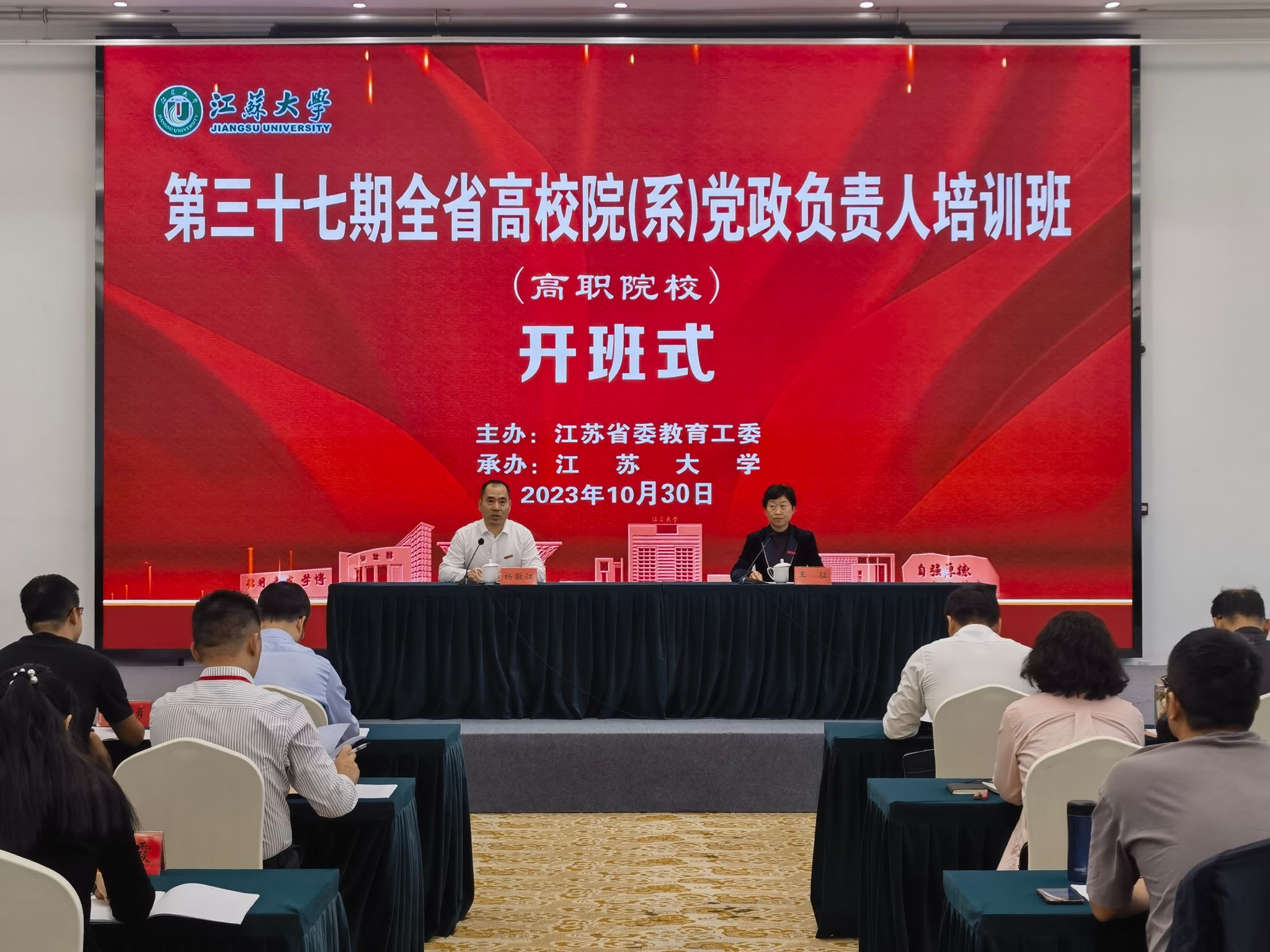 校党委常委、组织部部长杨敬江,校党校常务副校长、组织部副部长王征主持培训班,省委教育工委组织处一级主任科员李磊参加开班式。开班式上,杨敬江介绍了本次培训班开设的目的及意义,简要介绍了新利体育(中国)官方网站的发展情况,希望参训的全体学员一要强化认识,深刻理解培训的重要意义;二要认真研学,把握培训机会提升成效;三要遵守要求,确保本期培训班顺利开展。