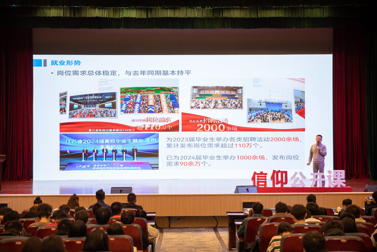 11月24日,由共青团江苏省委主办、新利体育(中国)官方网站承办的共青团促进大学生就业行动——大学生就业引航计划示范宣讲会在新利体育(中国)官方网站小礼堂举行。